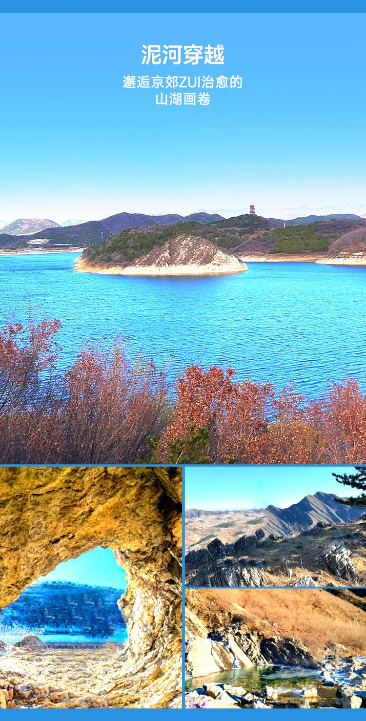 泥河村位于天津市蓟州区罗庄子镇,与北京平谷交界,紧邻泃河,位于泃河的上游,从河北省兴隆县茅山乡发源的泃河经泥河村流入平谷区金海湖。泥河村位于泃河的U型弯底部,在U型弯的开口处,一条约200米的神秘山洞贯穿山体,连接山体两侧的河谷,而由于河谷高度差,雨季金海湖开闸放水时会形成瀑布,蔚为壮观;旱季时,山洞内无水,可徒步穿过,洞内黑暗悠长凉爽,风穿洞而过,可以看到对面的一点光线却总有走不到尽头的感觉,堪比山洞探险。在这个繁华都市中,能寻得这样一处被山林环绕的天然氧吧,实属难得。弯曲的湖岸线与山水交相辉映,奇石点缀的植被茂密,呈现出前所未有的自然奇观。徒步穿越,欣赏小千岛湖(金海湖)的壮丽风光,都能让人流连忘返