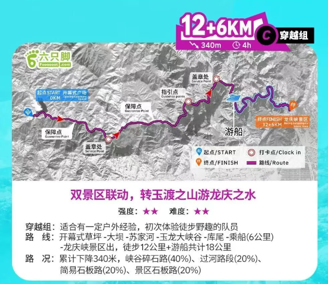 注:本次活动行程中不设补给点,可在景区内小卖部进行补给或提前自带。