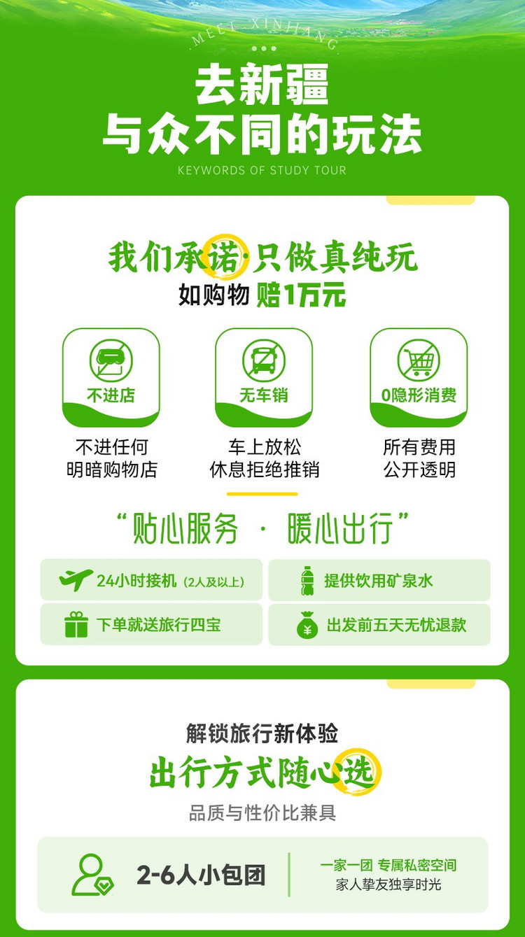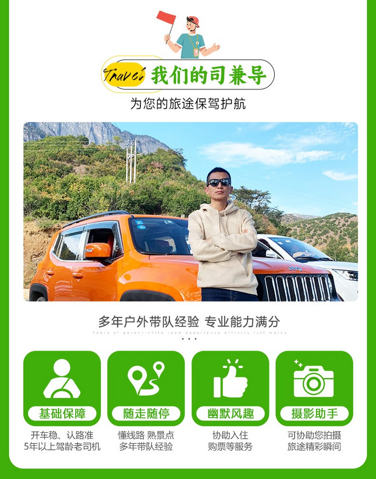 2.此线路提供集合日24小时接机服务(2-6人小包团一团统一接一次),接机师傅会在当天短信/电话联系您,请在报名时提供准确接机信息给客服,ZUI晚出发前3天给到航班信息,我司工作人员需提前安排后勤,逾期自行抵达酒店;不含送机站服务,如有需要请联系客服。