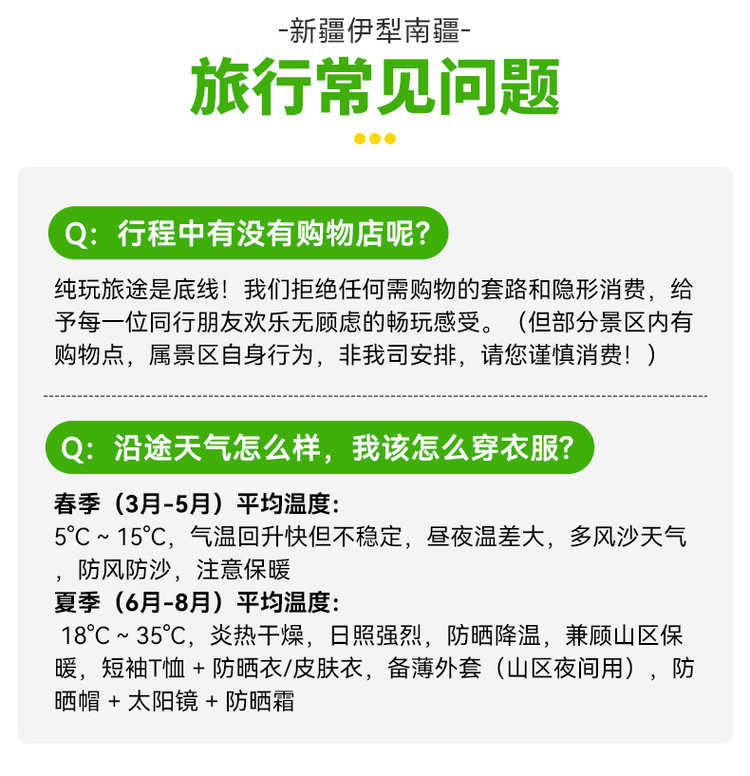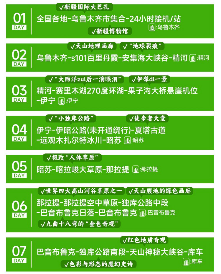 6.由于新疆和内地有2小时时差,小管家会在集合当天21:00之前通知第二天的集合时间及车牌号,请保持手机畅通。