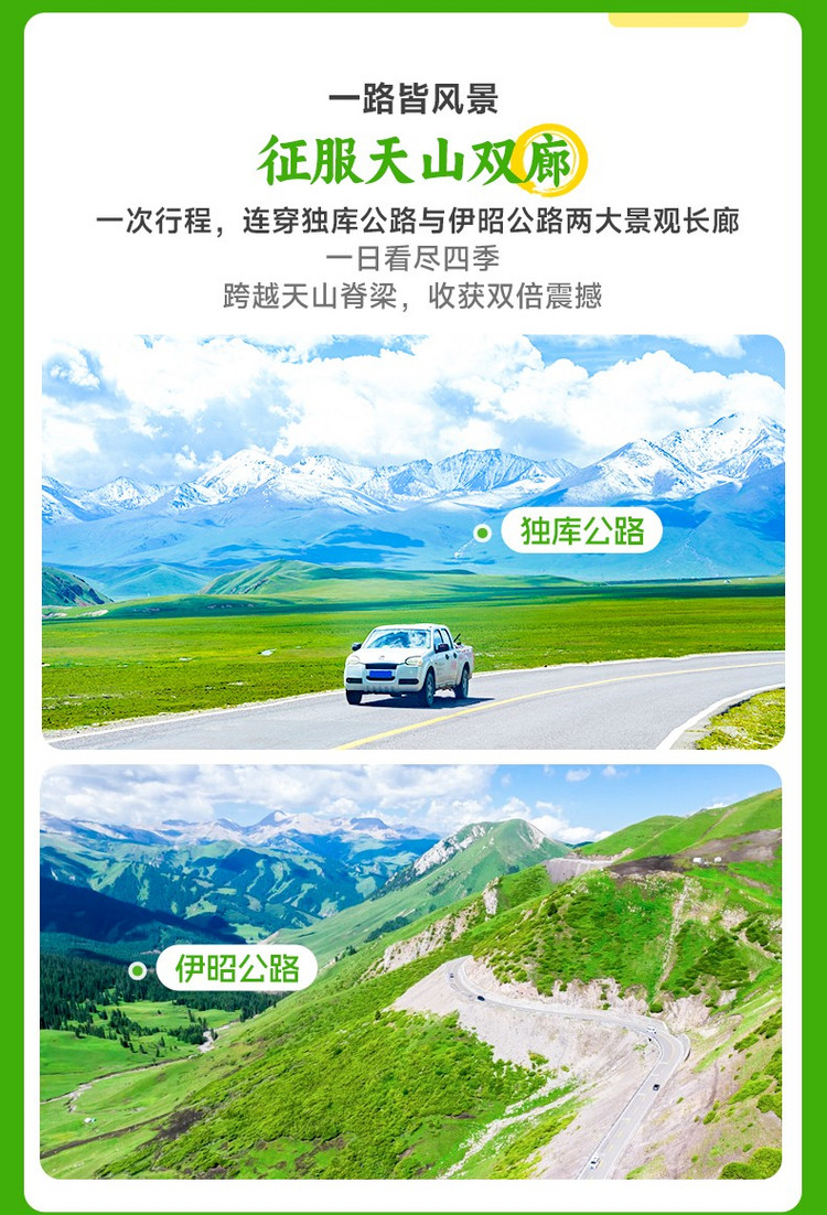 路况提示: 独库南段多盘山路与峡谷路段,请提前做好防晕车准备。