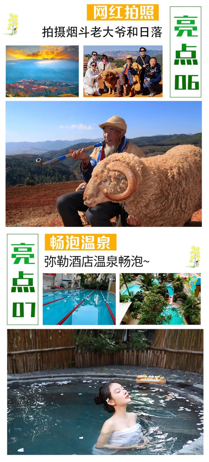亮点:探访彝族仙人洞村+漫步欣赏《三生三世》取景地晨景+弥勒东风韵+网红美憬阁下午茶(酒店自由美拍)+湖泉生态园