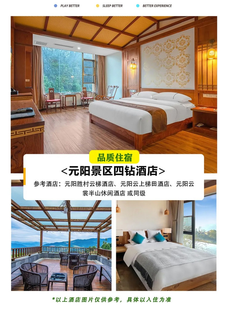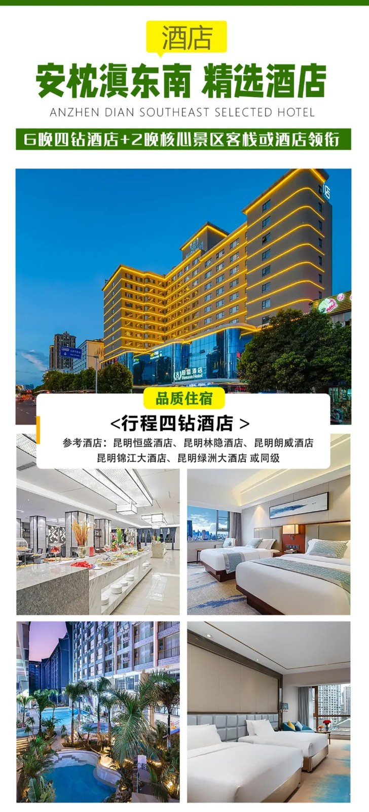3、【住宿】全程8晚住宿(6晚四钻+2晚核心景区精选住宿)