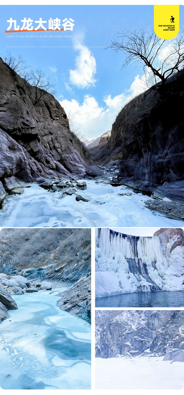 九龙大峡谷位于两座水库之间,处于高山峡谷之中,风景如画。峰峦峻秀,山谷忽宽忽窄,时明时暗,一条溪流如一根银线穿起大小不一,形状各异的水潭,如银线穿明珠一般,山谷中石兀立,泉声咽危石地貌多样,为此行平添了许多乐趣,踏冰嬉戏赏冰瀑和神奇的气泡冰,穿梭在这条与世隔绝的原始峡谷中步步皆景不虚此行。