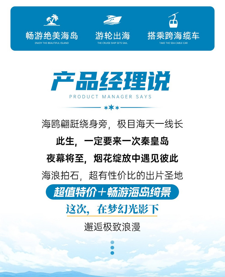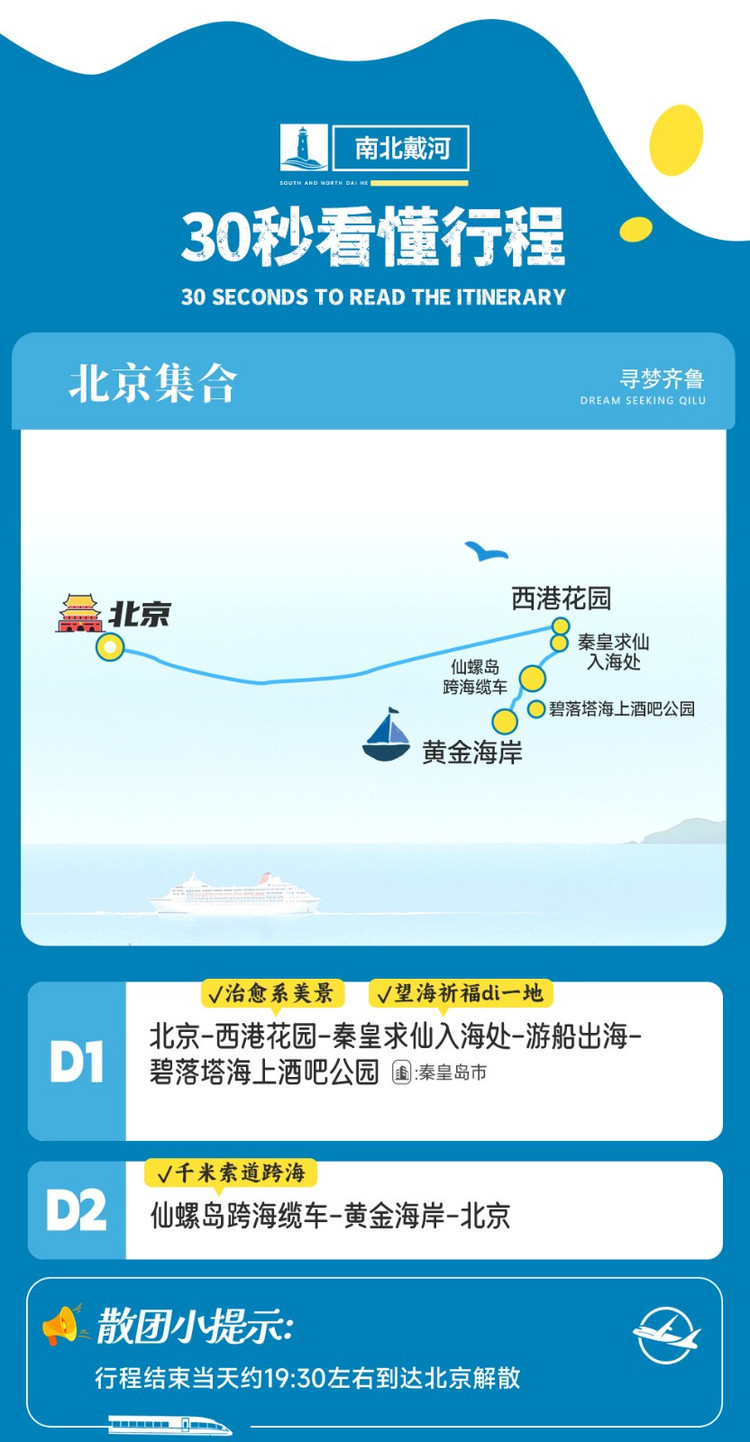*秦皇岛为季节性旅游城市,地理位置特殊,景区、交通和各类项目可能受各种不可抗力因素影响,以实际开放为准!