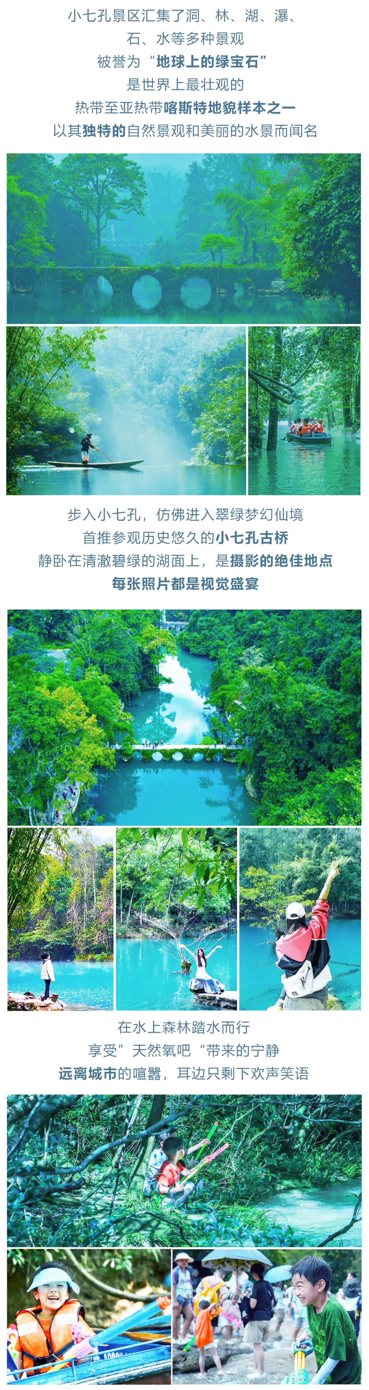 早餐后我们出发前往【荔波小七孔】这里空气清新犹如画中游的养生圣地。集山、水、洞、林、瀑、湖、石多种景观于一体,融雄、奇、险、秀、美为一炉,玲珑秀丽,被誉为喀斯特地貌中无与伦比的奇观,人称“超级盆景”。