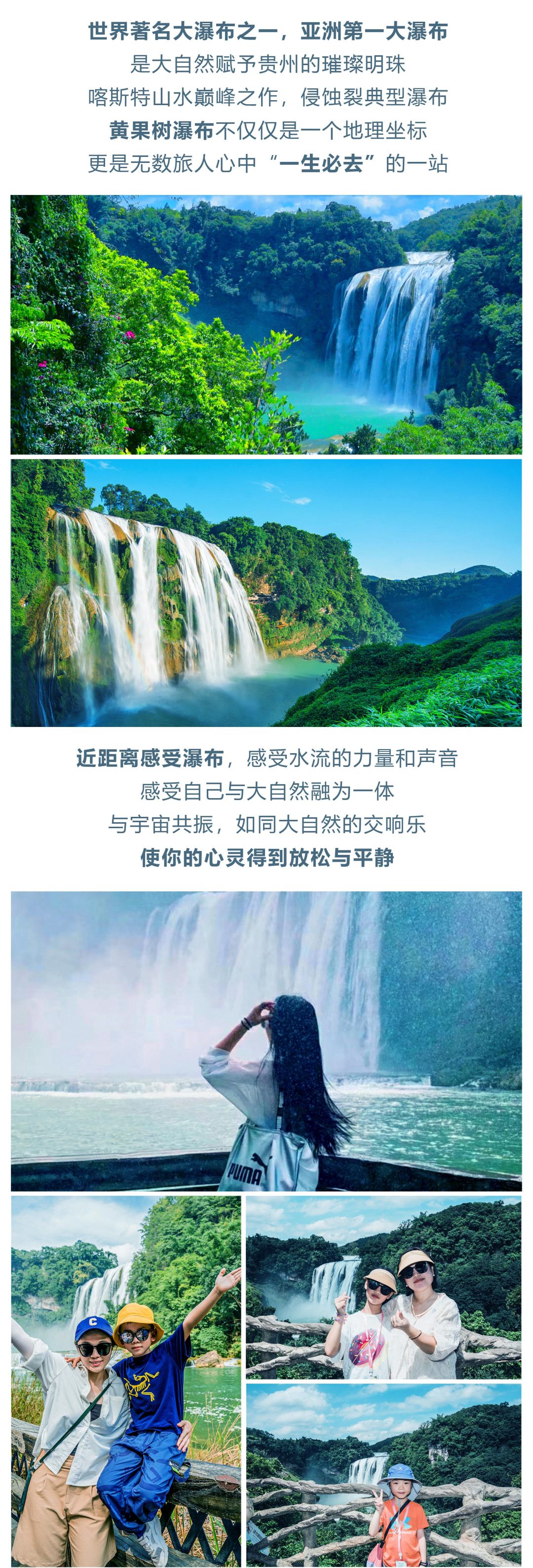 早餐后我们出发前往【黄果树风景名胜区】,作为贵州最大经典名片,他的壮观之景毋庸置疑。先行前往83版西游记片尾曲的取景地--黄果树景区最宽的【陡坡塘瀑布】我们不仅在这里重温西游记记忆,也会与众不同的带你避开人群。早上我们将前往【黄果树大瀑布】感受飞流直下三千尺,疑是银河落九天之气魄,在人最少的时候直面大瀑布之震撼。