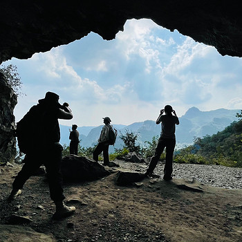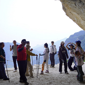 我们选择了小环线路线:从景区入口右侧上山,首先抵达紫云洞——这是一个天然形成的拱形洞府,宽敞凉快,视野极佳。队员们在这里拍照留念,记录下这神秘洞穴的壮丽景观。