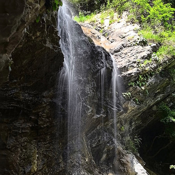 接着我们继续环山前行,到达濂泉玉瀑。瀑布飞泻而下,山水相映,景色宜人。虽然瀑布水量不算很大,但流水落入水池的声音悦耳动听,想必“濂泉响谷”的名字正是由此而来。