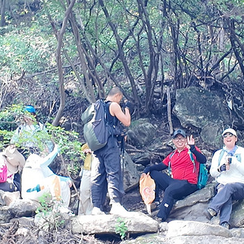 作为领队,我特别提醒队员们注意安全,因为沿途有些山路没有护栏,且因湿润路面长有青苔。大家相互扶持,体现了很好的团队精神。