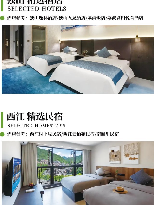 ③ 西江千户苗寨内因地理位置原因,入住的民宿酒店均没有达到星级标准,条件也比市区上的酒店差一些,但保证干净卫生舒适,请大家谅解。