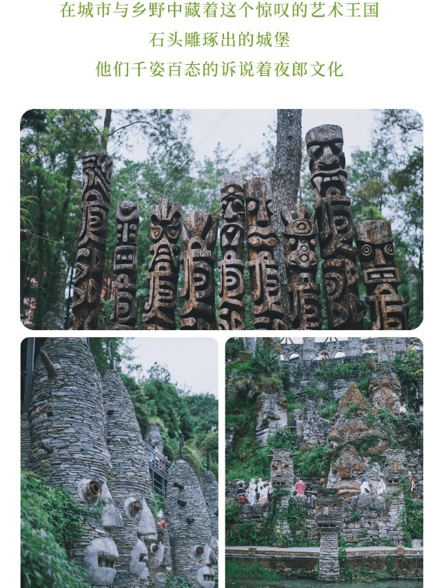 随后前往夜郎谷,夜郎谷是宋培伦教授按夜郎古国的记载打造的夜郎文化园,夜郎谷内造型奇特,是国内独一无二的夜郎文化展示中心。下午游览结束后乘车前往独山或荔波县城入住酒店。
