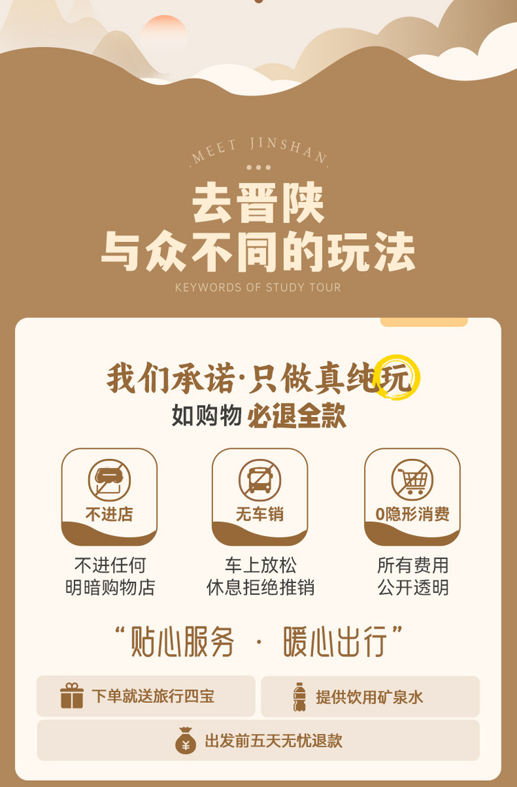 2、门票:碛口古镇免票,李家山免票,西湾村免票;(如景区有临时调整,以实际执行为准)