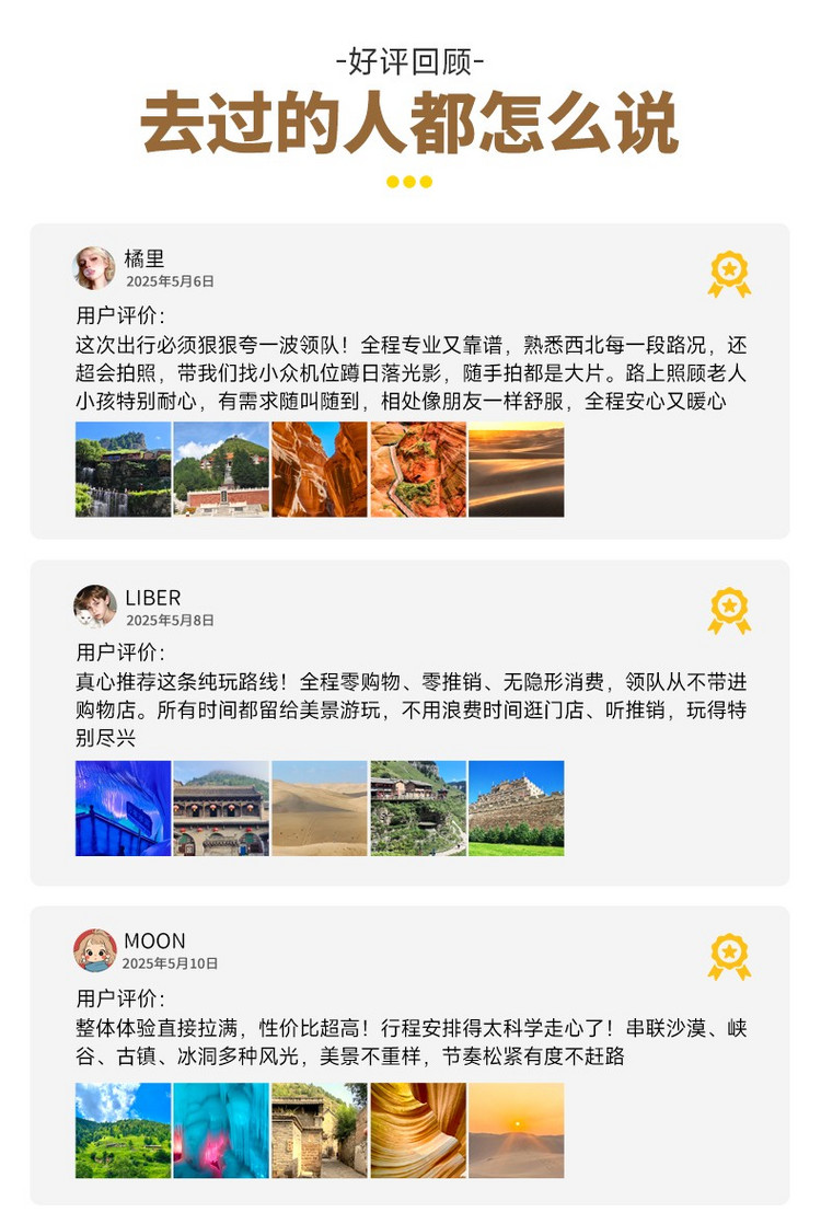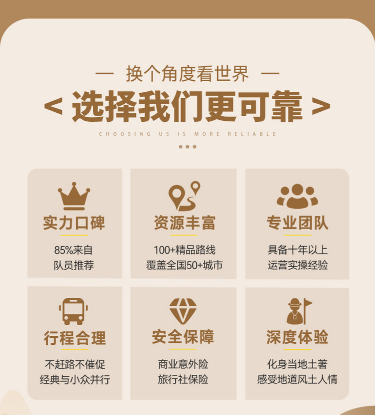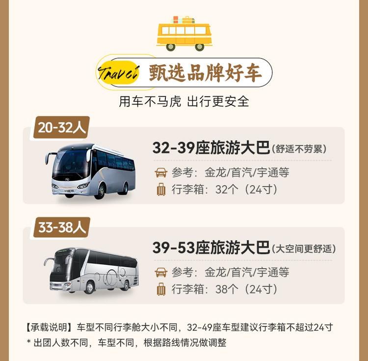 2、以上行程时间及顺序供参考,受天气、交通、景区调控及队员体能等不同影响有可能会调整,以领队实际安排为准;