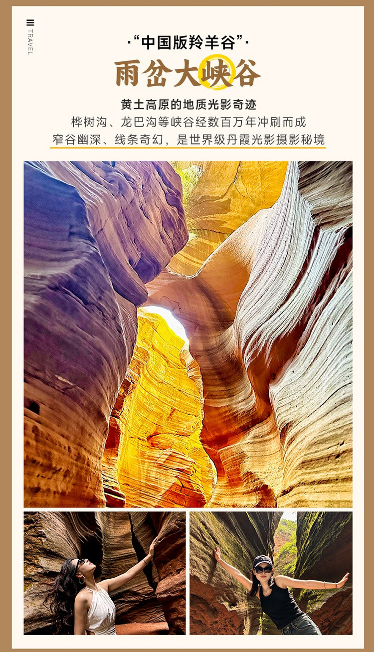 早餐后,我们前往有着“黄土高原自然地缝奇观"之称的【雨岔大峡谷】(车程约3小时,游玩时间约小时3-4左右)