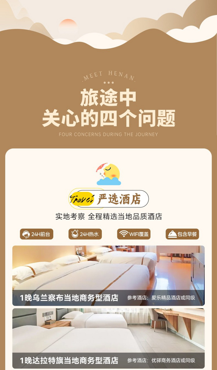 如不乘坐巴士的伙伴,今日可自行乘坐高铁到达乌兰察布,前往酒店报自己的姓名办理入住;