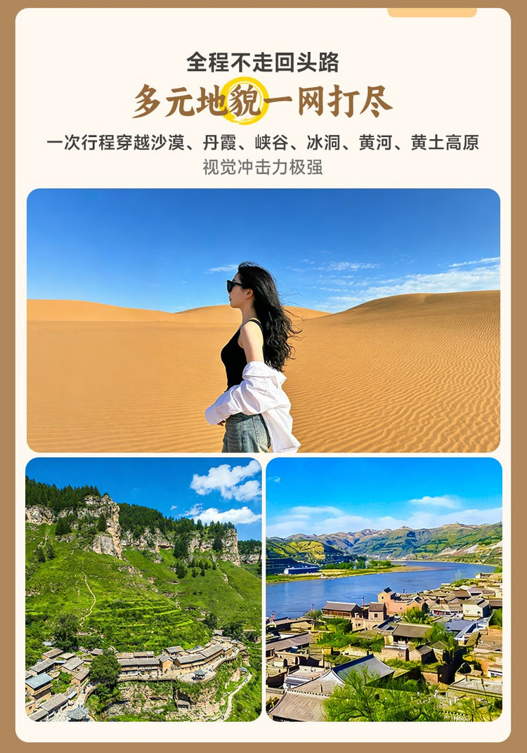 3、黄河壁画游船(每船6人,约300元/船)以及行程内的可选娱乐项目和小景点门票自理;