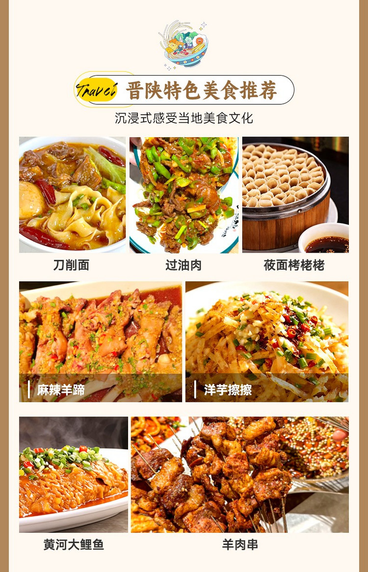 中午大家可以品尝黄河大鲤鱼、荞面饸饹、碗团等当地特色美食,稍作休整补给;