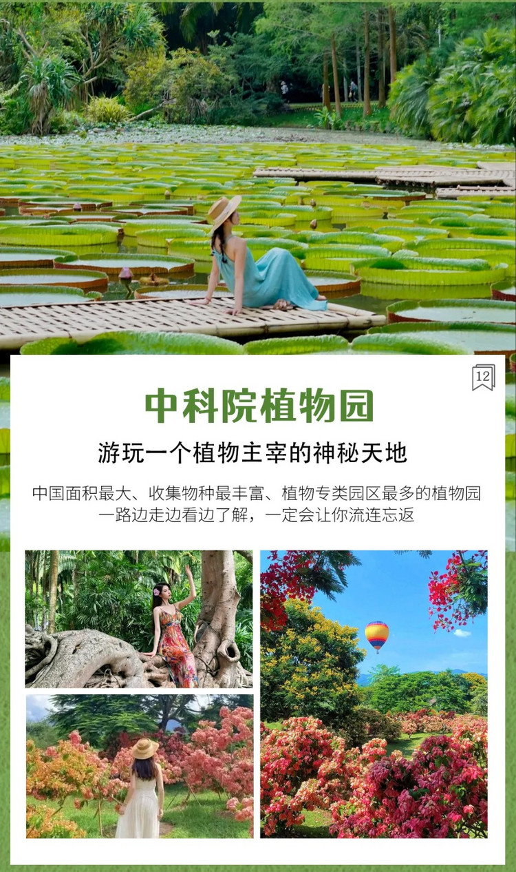 早餐后我们前往5A景区【中科院热带植物园】,这里植物花卉种类繁多,是中国面积最大、收集物种最丰富、植物专类园区最多的植物园(电瓶车自理)。各种奇花异木,郁郁葱葱,有3000多种国内外热带、亚热带植物,热带雨林为主,及科研、植物种质保存、科普和生态旅游为一体自然植被保护完好,各种神奇的植物,龙血树,会开花的铁树王,含羞草,跳舞草,箭毒木,绞*现象, 如果说云南是 “动植物王国”,中国科学院西双版纳热带植物园就是植物王国凤冠霞帔上*璀璨的绿宝石, 人与自然和谐相处的轻松与愉快,充分感受边陲“世外桃源”的情趣。一路边走边看边了解,一定会让你流连忘返。