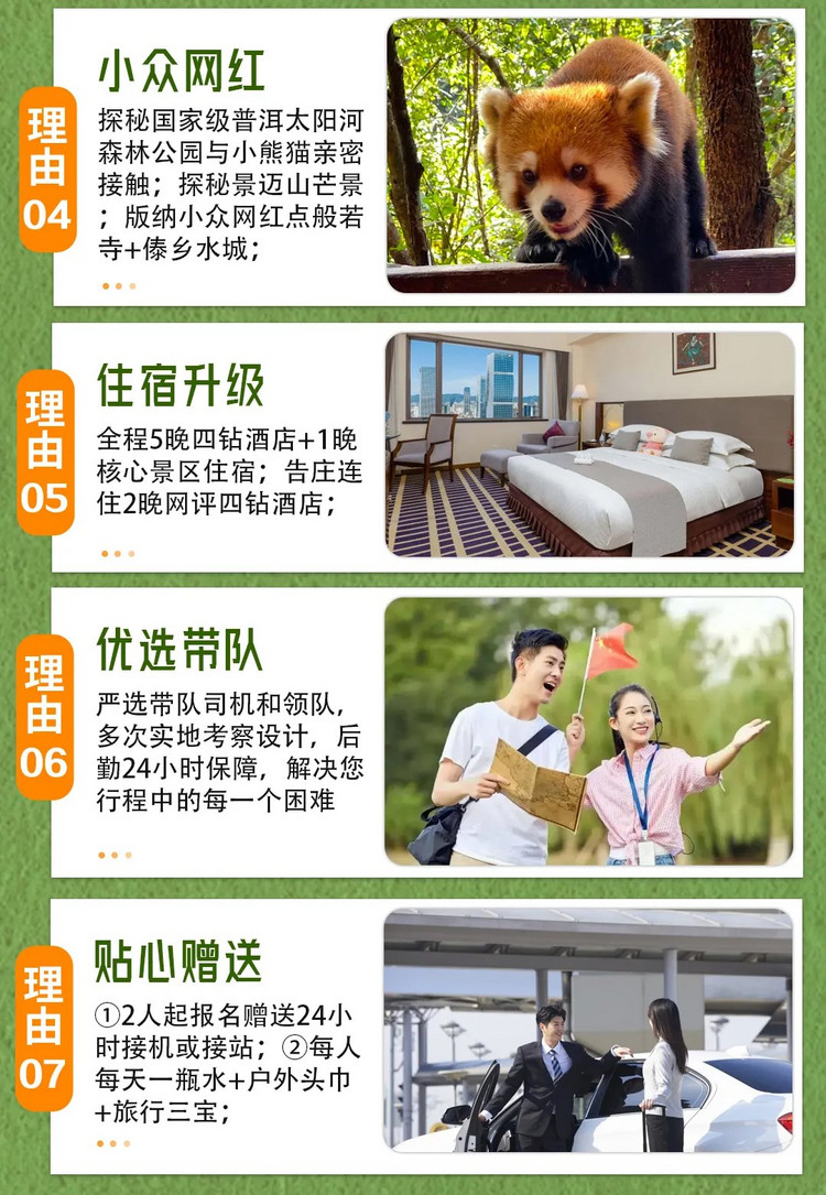 如果想继续留在版纳,或第二天再返回的伙伴,可以联系我们的客服,我们可以帮大家预订版纳或昆明当晚住宿。