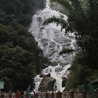 午餐后,我们开始上哀牢山,途中山路九曲十八弯,一个突然的大转弯后,我们来到【南恩瀑布】。“南恩”在傣语中,指银白色的水流。银色的水花、陡峻的山崖,一眼望不到顶的瀑布,何其壮观。面对南恩瀑布时,会忍不住感叹“飞流直下三千尺,疑是银河落九天”的“写实”。