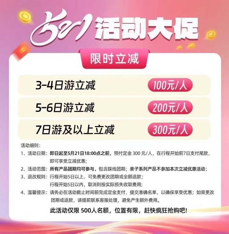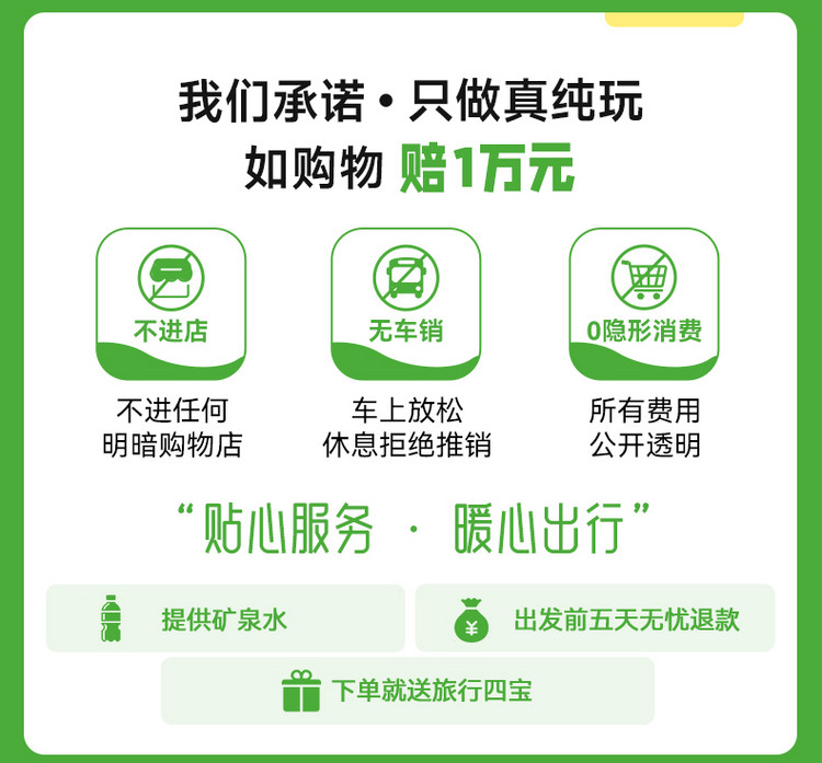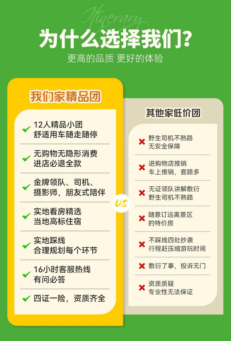 7、 出游过程中,如产生退费情况,以退费项目旅行社折扣价为依据,均不以挂牌价为准。