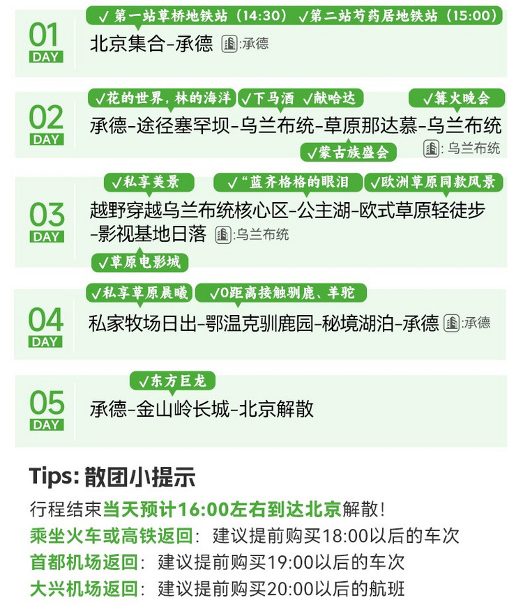 5、 旅游者未按约定时间到达约定集合地点,视为旅游者解除合同,按出发当日退出活动相关约定处理。