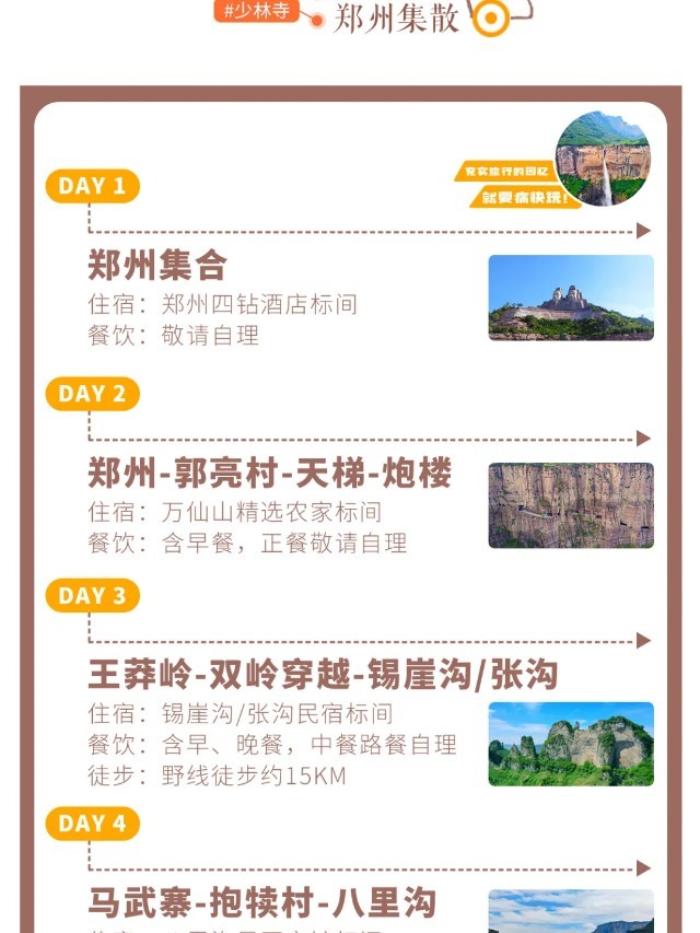 1、不徒步的伙伴,可以休闲游玩王莽岭景区、锡崖沟景区,产生的费用需自理;