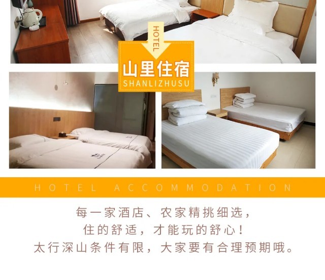 装备:为响应环保号召,景区农家不配一次性用品,请大家自备洗漱用品哦;