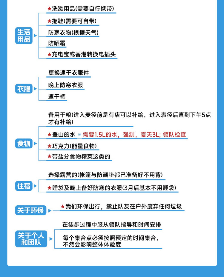 其他:徒步紫外线强,请自备防晒霜和唇膏,太阳镜。