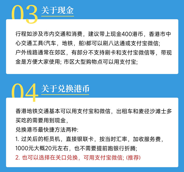 现在香港交通基本可以用支付宝,我们选择最快的方式和线路争取最多时间,关口--M018合计大概需要60元港币左右;市区购物可用支付宝;麦径段请预留100-200现金,或者在关口柜员机提取;