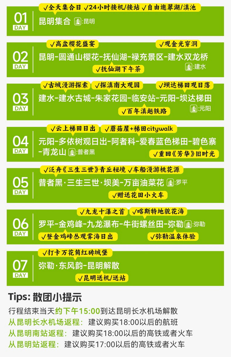 3、如果定火车“昆明站”返程的朋友,建议定当天17:00之后的高铁或者火车。