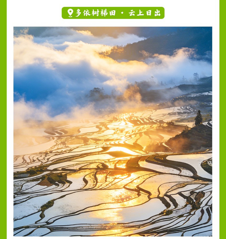 06:30 赶在太阳出来前抵达【多依树梯田】。这里是元阳看日出晨景好地方,也是重头戏,普高老寨,彩霞、云海、梯田、村庄、晨雾,诗意和雄浑尽收眼底。