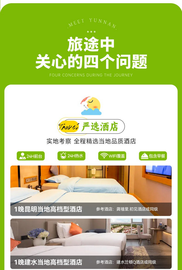 1、交通:昆明出发及昆明州解散的全程专属用车及司机星级服务(含司机餐补、住宿)