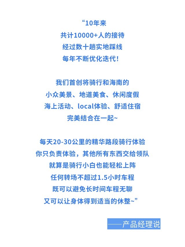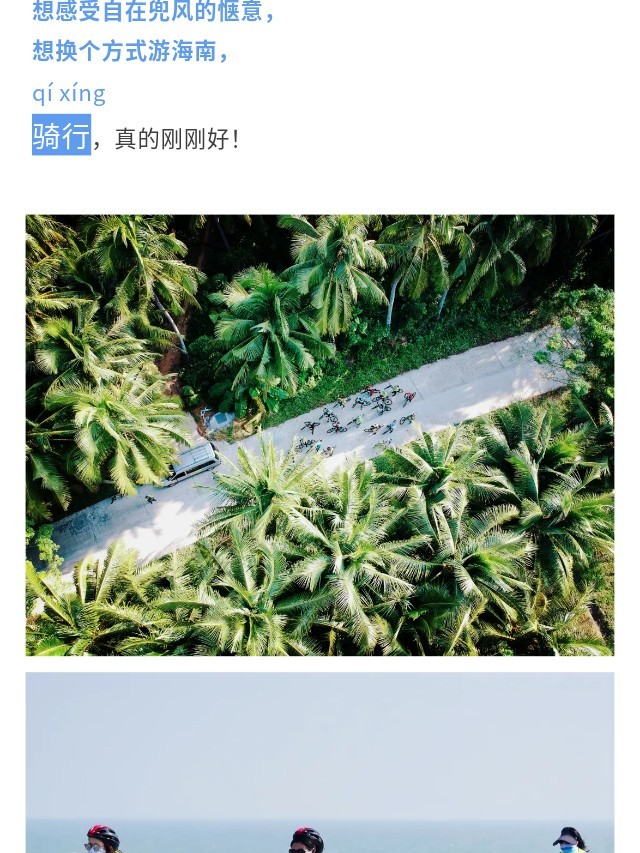 去过青海骑行,海南骑行一直在计划里,这次趁着小长假参加了潮尚组织的70公里骑行活动,很满意,全程安全保障长的很到位,晚上的住宿也不错,强烈安利