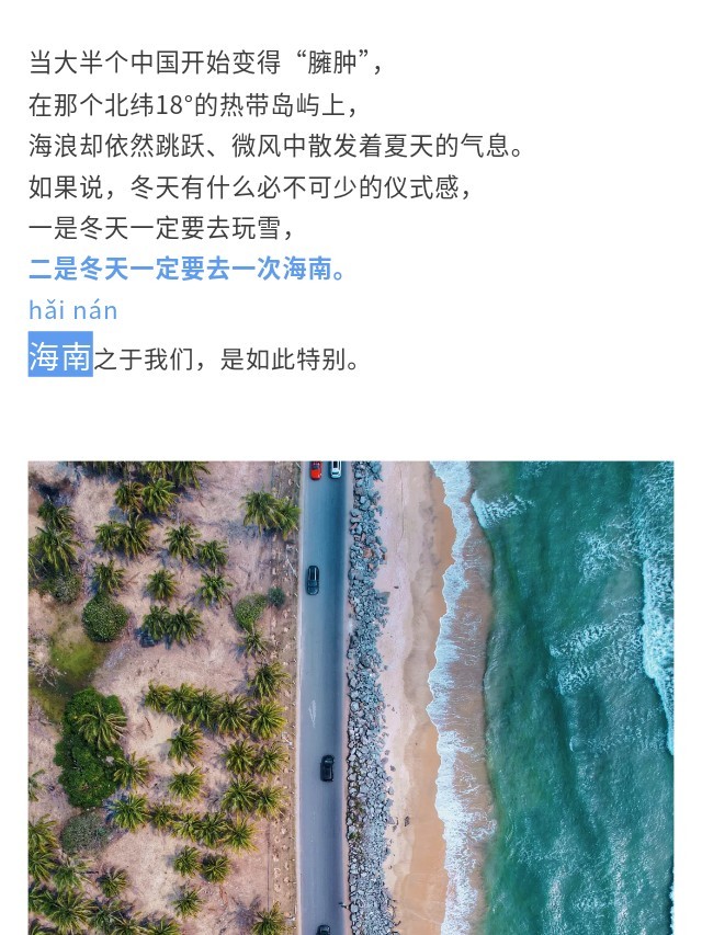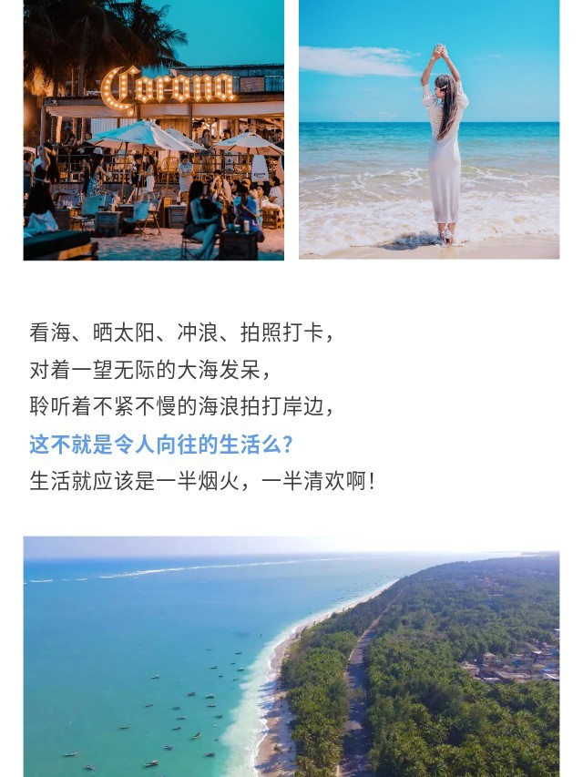 下午:午餐后我们乘车转场来到博鳌旅游公路沿海骑行24km,这这段沿海旅游是每年国际公路自行车赛的第一赛段,感受风驰电锯般的快感,打卡“网红牛奶海”、珊瑚海岸。途径潭门“千年渔港”这里的人民以渔业为生,也是海南最大的远洋捕捞作业集散口之一。