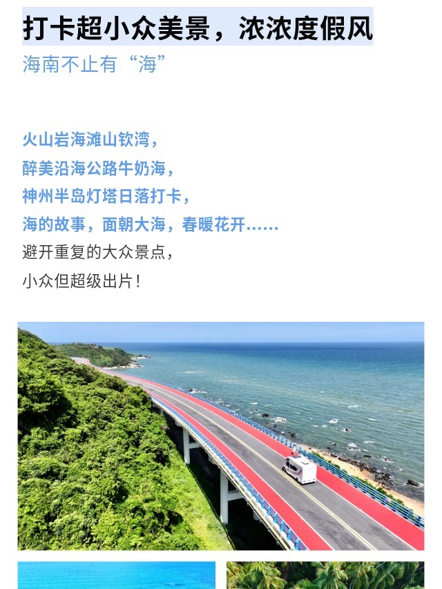 上午:早餐后收拾行李集合,乘车出发前往山钦湾旅游公路,这是一段极美的新修环岛赛段路游公路,站在桥上一望无际的大海,心情无比放松
