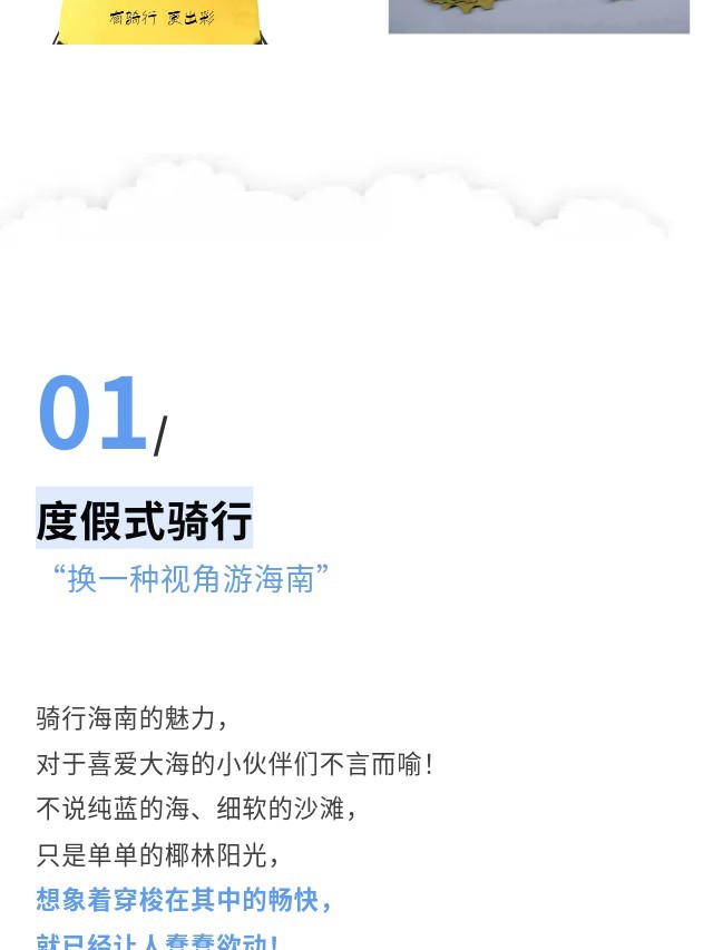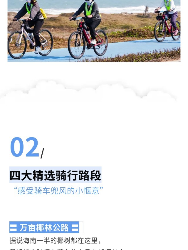 下午:午餐后我们继续出发,前往万宁沿海旅游公路开启下一段骑行之旅。