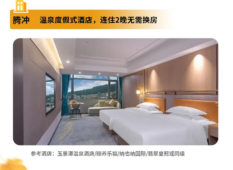 2、赠送腾冲五星温泉SPA1次(悦椿温泉或柏联温泉2选1);