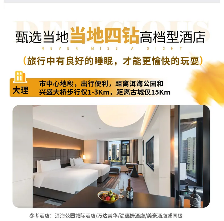 4、餐食:行程内注明包含5个早餐(酒店含早),正餐自理(不占床位不含早餐);