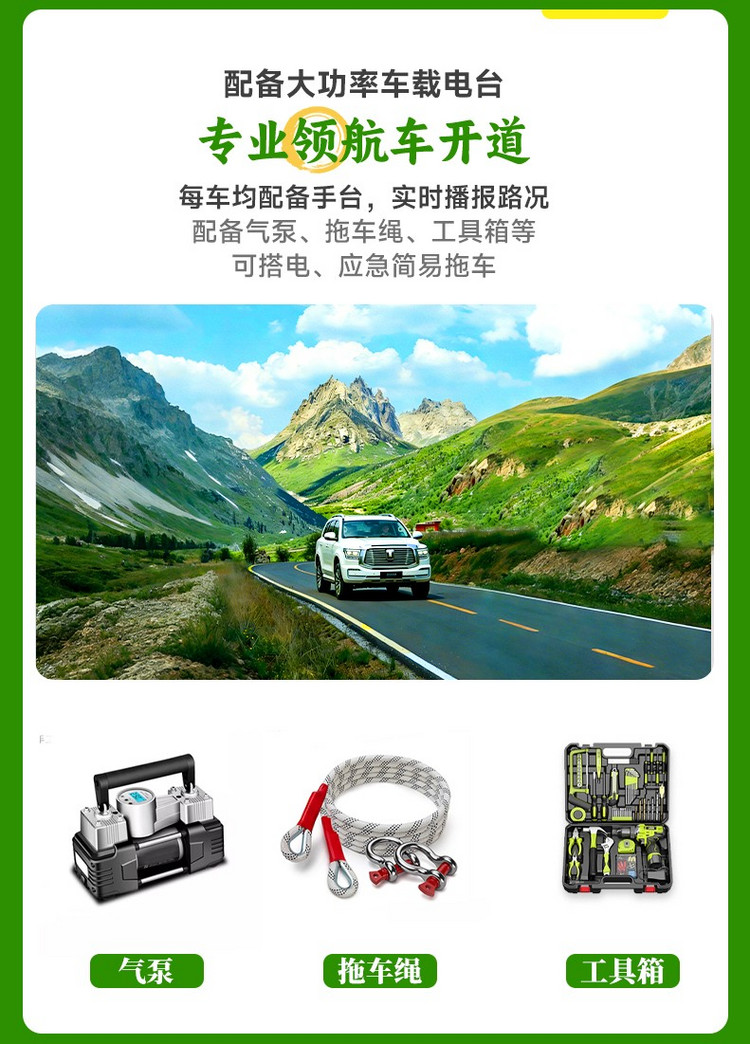 1、领航车:领航车保驾护航(领航车的所有相关费用)