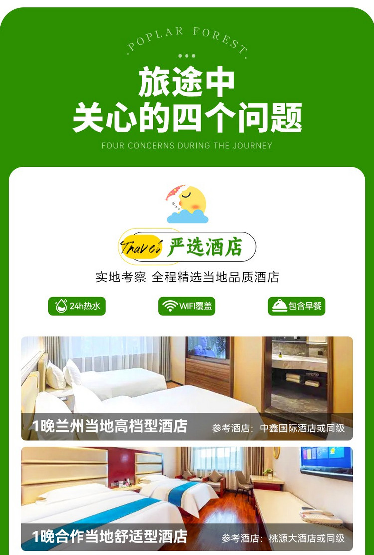 1、兰州集合当天,2人及以上免费赠送接机/站服务,请您提供航班信息/高铁车次。