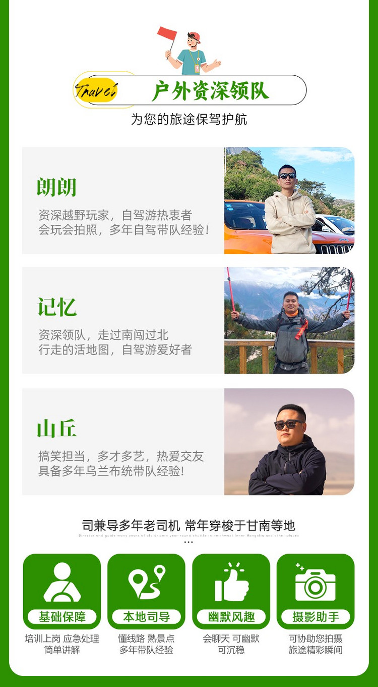 7、领队:全程自驾领队陪同带你玩,配备摄影师跟拍