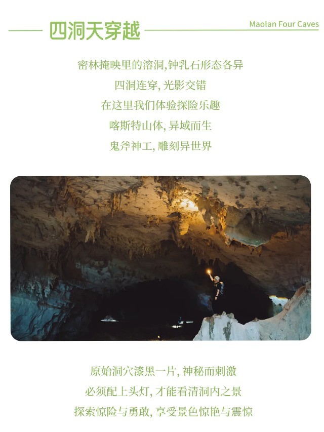 在这片喀斯特原生林中徒步,是与古老自然最直接的呼吸对话。夜晚,入住森林深处的民宿,推开窗即是星河。月光流淌,树影婆娑,唯有清风与虫鸣伴你入眠。
