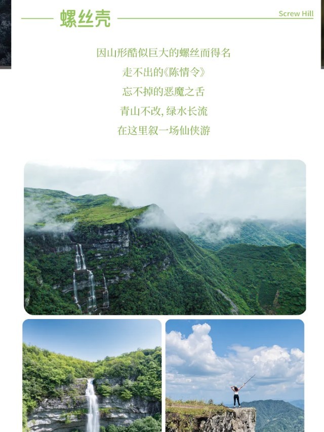 早餐后乘车出发旅程的首个秘境——螺丝壳高山草甸,打卡《陈情令》拍摄地;热身后徒步下至一个不知名却十分壮观的瀑布,随后穿越高山草甸至鹰嘴岩,这里的视野十分开阔,也特别适合出片,随后环线徒步回到起点乘车前往都匀市入住酒店。晚上自由打卡西山大桥、石板街、品尝当地特色美食等。
