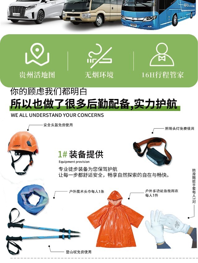4.活动提供装备中说明的:头盔/头灯/登山杖各一件免费租借(用后回收,如需要双杖请提前告知),赠送头巾/手套、户外多功能急救雨衣(不回收)