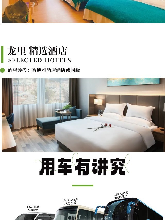 ➀ 用车:当地行程用车(根据具体人数选配车型:5-38座)