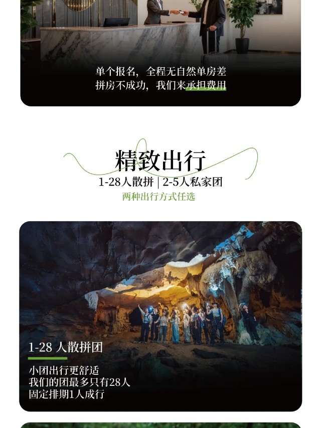 ② 酒店一般在14:00后方可办理入住,早到的小伙伴如未到酒店入住时间,可在酒店寄存行李先行游玩。领队会在集合当天下午在活动群内发布第二天行程需要准备的物品和注意事项及告知次日行程安排