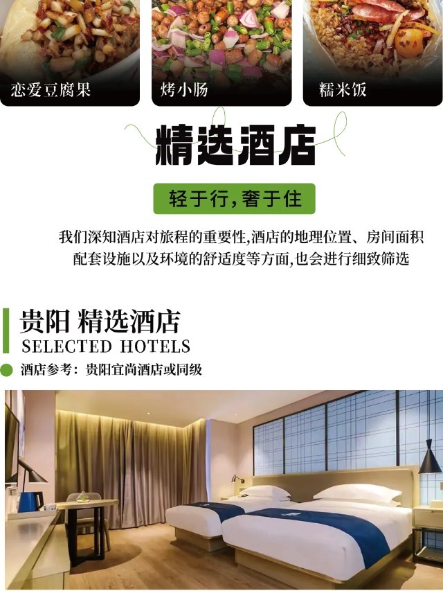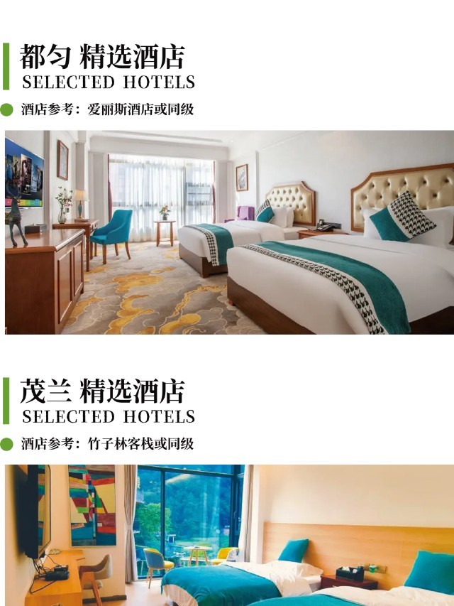 ➁ 住宿:贵阳1晚+都匀1晚+茂兰1晚+龙里1晚酒店(2人/间)