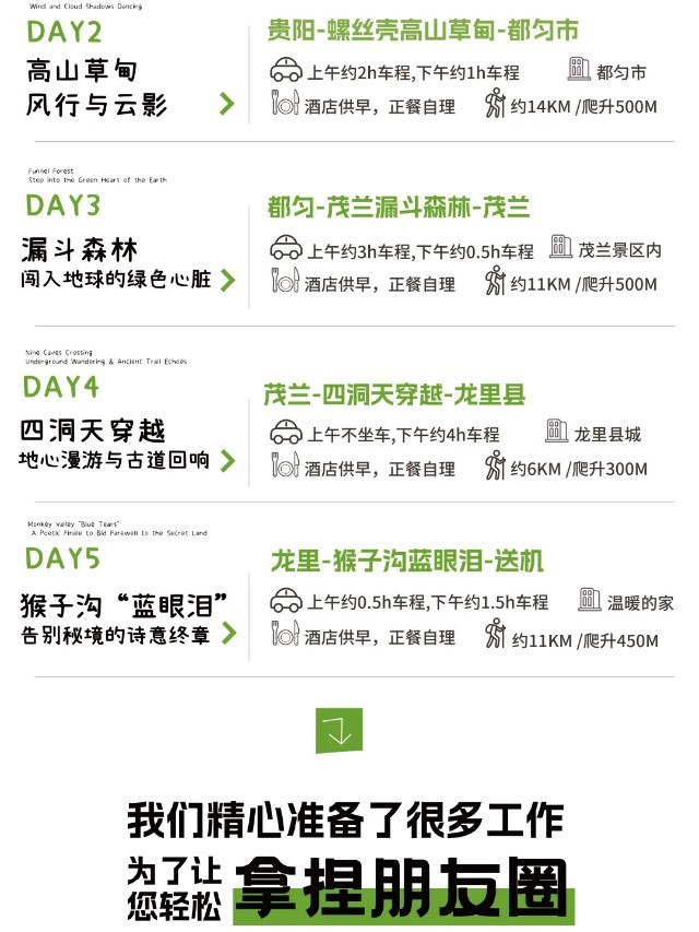 ➂ 游览:行程所列目的地徒步游览+茂兰门票